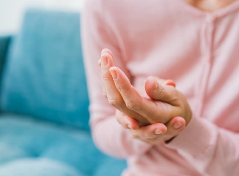 初期には、手足の指の関節が左右対称に腫れ、朝のこわばりが現れます。膝や股関節などにも症状が広がり、水が溜まって動かしにくくなったり、痛みで日常生活に支障が出ることもあります。関節だけでなく全身に影響する病気で、貧血やだるさ、微熱が出ることもあります。症状が続く場合は、お気軽にご相談ください。